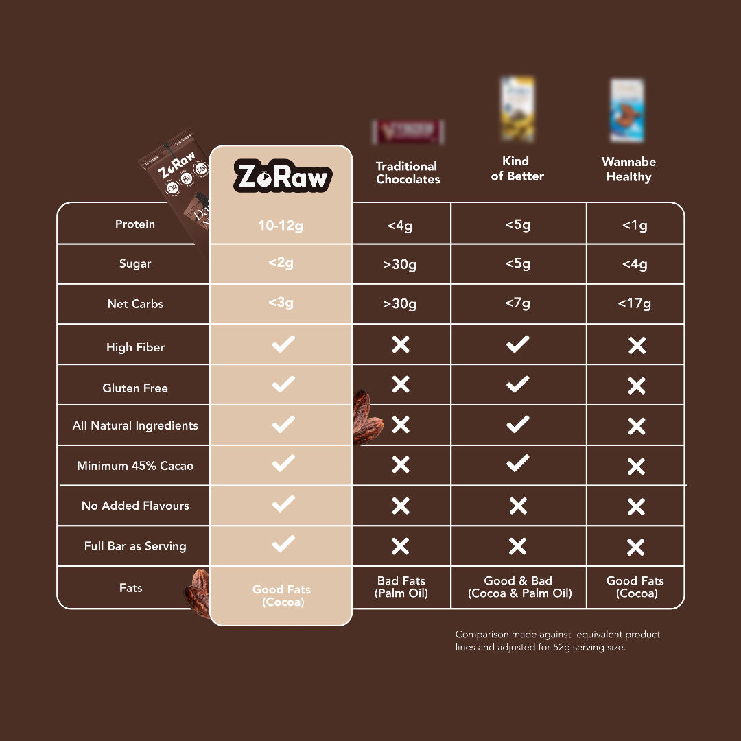 Indulge guilt-free with less than 2g of sugar in a 52g bar.