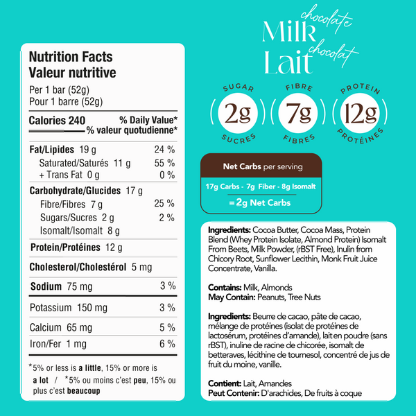 Keep carbs in check with only 3g of net carbs or less per bar.